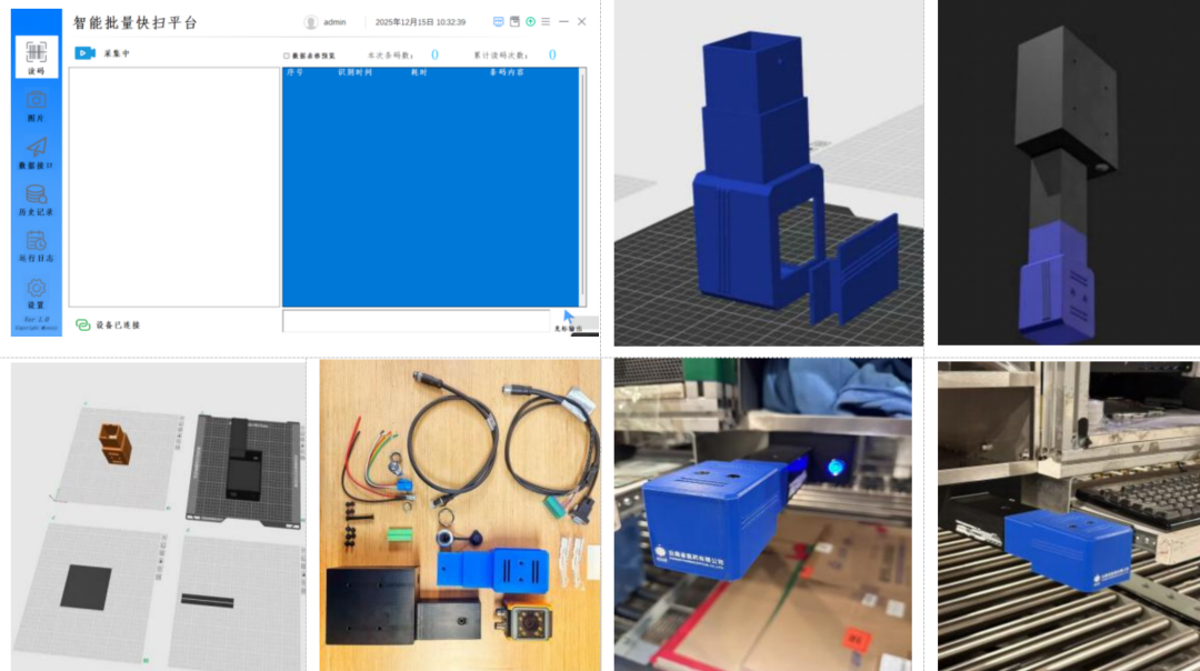 傳統(tǒng)藥品復(fù)核依賴人工手持掃碼槍逐件操作,效率低且易出錯。針對外購設(shè)備兼容性差、成本高等問題,設(shè)備技術(shù)團(tuán)隊果斷啟動自主研發(fā)。自2025年9月起,團(tuán)隊先后完成“智能批量快掃平臺”軟件開發(fā)、設(shè)備結(jié)構(gòu)自主設(shè)計與3D打印成型,并對核心視覺識別模塊進(jìn)行多輪選型與調(diào)試,于12月成功安裝51臺批量掃碼設(shè)備,實現(xiàn)從軟件到硬件的全鏈路自主可控。