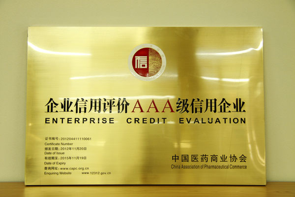 2012年12月4-5日,中國醫(yī)藥商業(yè)協(xié)會(huì)在廣州舉辦“2012中國藥品流通行業(yè)年度大會(huì)”,會(huì)上發(fā)布了由中國醫(yī)藥商業(yè)協(xié)會(huì)開展的第四批中國醫(yī)藥商業(yè)行業(yè)企業(yè)信用等級(jí)評(píng)價(jià)的評(píng)定結(jié)果,公司繼2009年度后再次被評(píng)定為中國醫(yī)藥商業(yè)行業(yè)“企業(yè)信用評(píng)價(jià)AAA級(jí)信用企業(yè)”(有效期三年)。